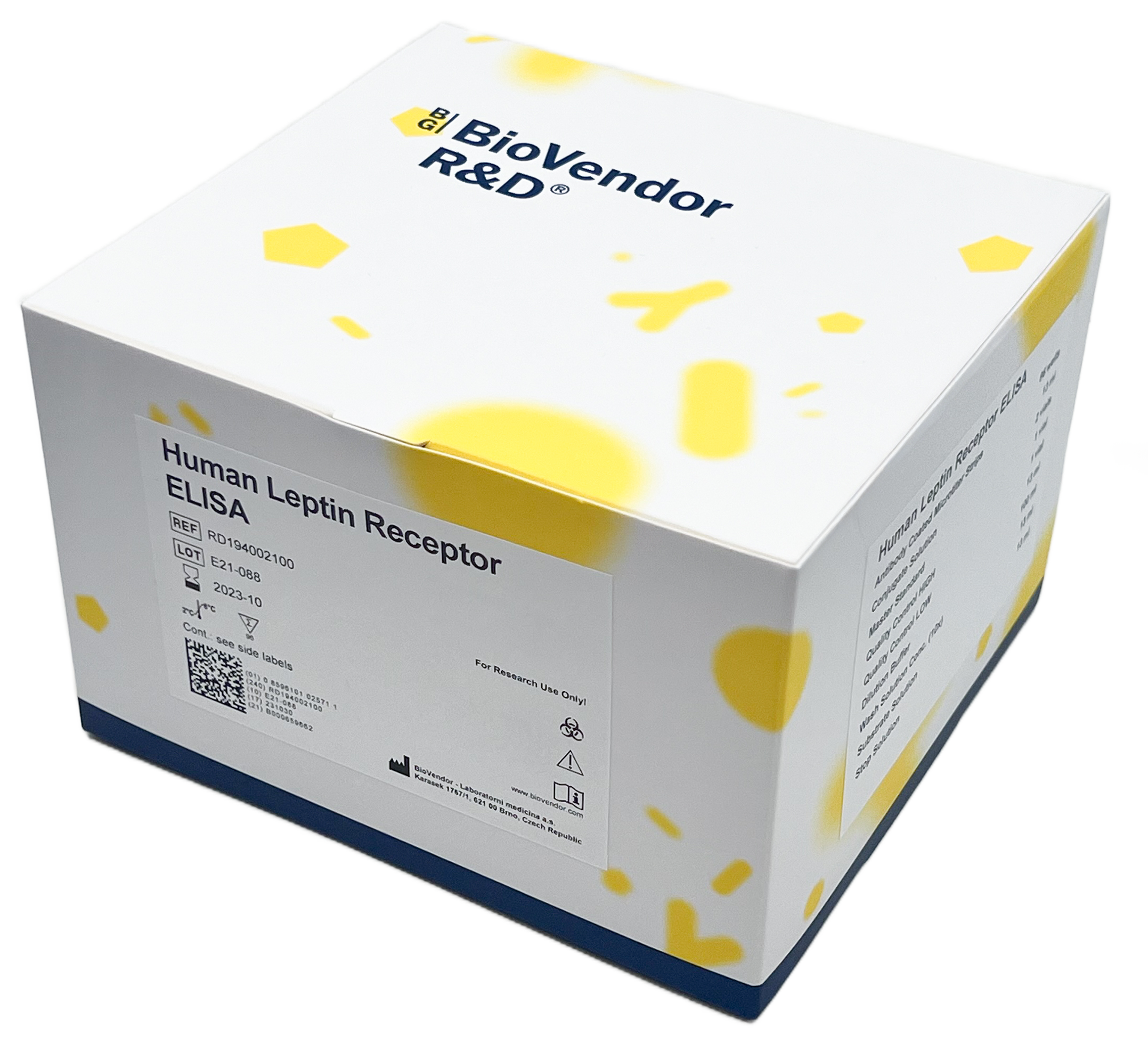 Leptin receptor (OB R) was identified as a leptin binding protein (Leptin, the product of the ob gene, is a single chain 16 kDa protein consisting of 146 amino acid residues.) OB R was found to be a member of the class I cytokine receptor family with a large extracellular domain comprising 816 amino acid residues. Leptin receptor exists in multiple forms with a common extracellular domain and a variable length cytoplasmatic portion. Alternate splicing from a single gene derives the six isoforms of the Leptin receptor. The soluble form of the Leptin receptor, OB R contains no intracellular motifs or transmembrane residues, thus it consists entirely of the extracellular ligand binding domain of the receptor. Long forms of OB-R transcripts were reported to be expressed predominantly in regions of the hypothalamus which provides evidence that Leptin receptor is important in body weight regulation. Expression of short forms of OB-R transcripts have been found in multiple tissues, including the choroid plexus, lung, kidney, and primitive hematopoietic cell populations. Leptin receptor may act as a negative regulator of Leptin activity and it may maintain a pool of available bioactive Leptin by binding and delaying its clearance from circulation. Soluble Leptin receptor levels are indirectly proportional to adiposity and are increased in females versus males. Leptin receptor levels are highest in infants, decrease into adolescence, and remain relatively stable throughout adulthood. Soluble Leptin receptor is also found upregulated in patients with chronic heart failure, end-stage renal disease and anorexia.