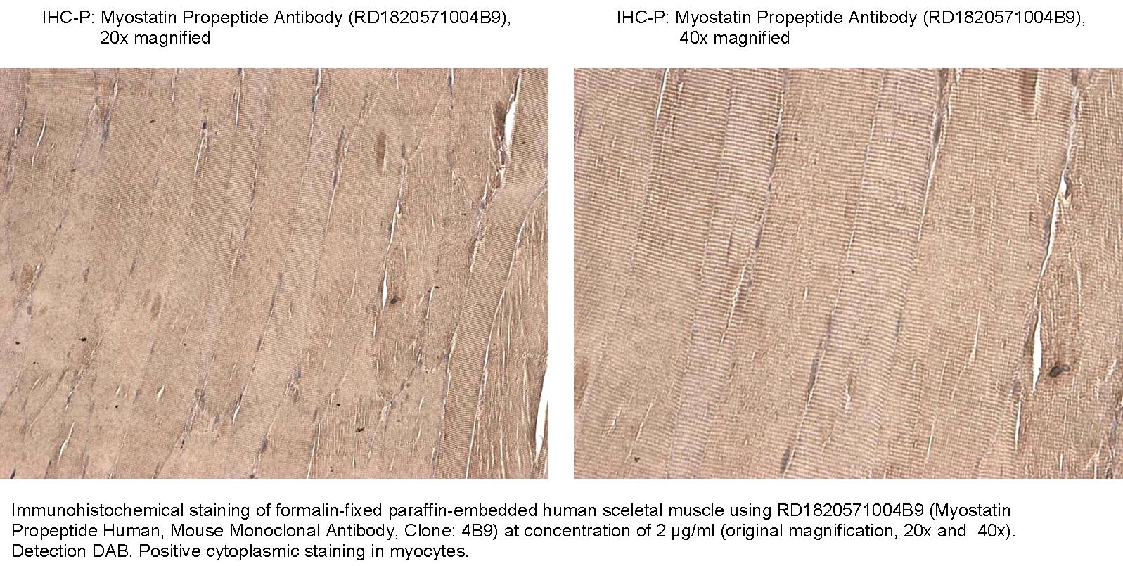 The antibody is a mouse monoclonal antibody against recombinant Human Myostatin Propeptide.
